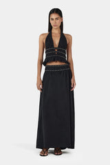 The Ownley Tabby Studded Midi Skirt adds effortless edge to any outfit. Designed with a flattering low waist and silver stud embellishments along the hips, this flowing skirt features a full silhouette that moves beautifully with you. Fully lined for comfort and finished with an invisible side zip for a seamless fit, it’s the perfect statement piece. Pair with the Mavis Studded Top for a bold, coordinated look.