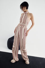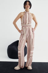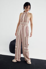The Fuzz pant is a high waisted cargo pant shape. This style is a new shape from the Odyssey collection. Featuring a relaxed fit, waistband finish and contrast stripe pockets. The Fuzz pant is made from a custom handloomed stripe fabric.