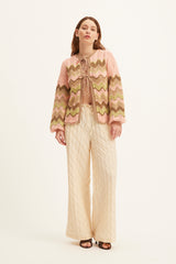 Introducing the Summery Copenhagen Lele Cardigan in the multi-colour pattern. Crafted from 100% cotton, this cardigan offers a soft, breathable feel, perfect for layering in any season. The standout tie-up detailing adds a fun, bohemian touch, allowing you to wear it open or closed for versatile styling.