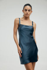 The Crush Bias Classic Mini will quickly become your go-to mini this season. Cut in crushed finish Acetate, and bias cut for a flattering fit. This mini slip dress features a straight, square neck line and fixed straps.