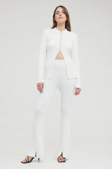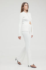 Designed with comfort in mind the Hooked In Knit Flare Pant is crafted from a premium ribbed knitwear fabrication that offers a soft and cozy hand feel finish. This slim fit pant features a split flare design that elongates the leg and finished with a hook and eye detail.