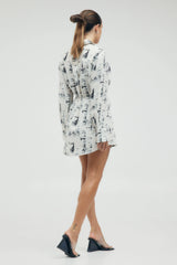 The Lip Service Shirt Dress is your new quintessential piece this season. In an exclusive Third Form print, this tailored shirt design and scooped hemline put's a spin on the word sophistication. Featuring a belted waistline and cuff detail - this piece is your answer to easy tailoring.