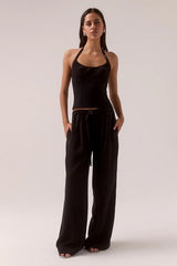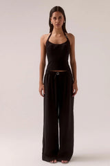 The Demi Top by Sovere Studio is a modern halter top crafted from a luxe viscose-blend fabrication. Designed with a scooped neckline, shaped underbust seam, and sleek body-shaping panels, this fully lined top offers both structure and sophistication. Silver metal slider details at the front strap and back neck add a polished finish, while the invisible back zip ensures a seamless fit. Perfect for pairing with tailored pants or skirts for an elevated evening look.