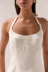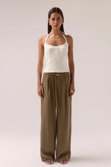 The Demi Top by Sovere Studio is a modern halter top crafted from a luxe viscose-blend fabrication. Designed with a scooped neckline, shaped underbust seam, and sleek body-shaping panels, this fully lined top offers both structure and sophistication. Silver metal slider details at the front strap and back neck add a polished finish, while the invisible back zip ensures a seamless fit. Perfect for pairing with Espy Pants for an elevated evening look.