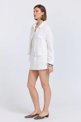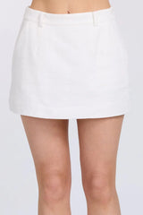 Elevate your everyday style with the Sovere Cove Mini Skort in Chalk. Crafted from a textured cotton fabrication, this mid-rise, micro mini skort blends style and practicality with a fitted internal short for all-day confidence. Featuring a side seam zipper, waistband with belt loops, and angled front pockets, this versatile piece is perfect for effortless styling.