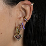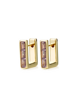 The Diode Gemstone Huggie Earrings are a sharp layering essential, featuring three rectangular faceted amethyst inlaid along the front edge of a square huggie. A hidden hinge opens this earring at the back and makes it a comfortable choice for everyday wear.