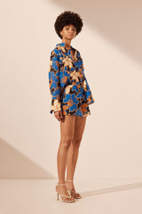 Oversized classic shirt with patch pockets in the exclusive Karla floral print in a premium sheer Linen TENCEL™ blend.
