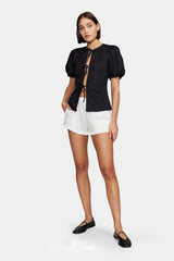 The Norma Short by Ownley. Designed for effortless wear, these boxy mini shorts feature a playful frill hemline, side seam pockets, and a comfortable elastic waistband. Made from soft, breathable cotton, they’re lightweight and unlined, perfect for warm days and relaxed styling. Whether you're dressing them up or keeping it casual, these versatile summer shorts are a must-have.